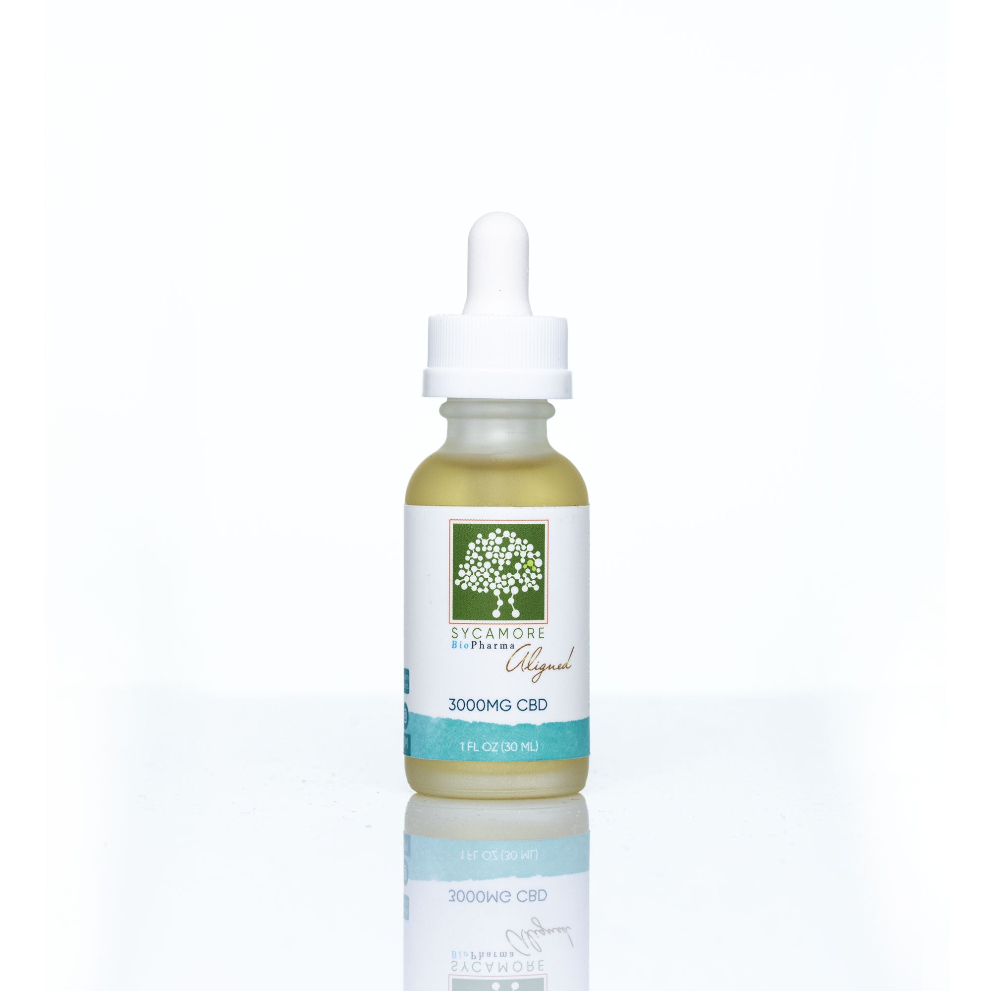 - Aligned CBD tincture contains 3000mg of CBD (1oz.) with 50mg of CBD per serving (0.5mL).